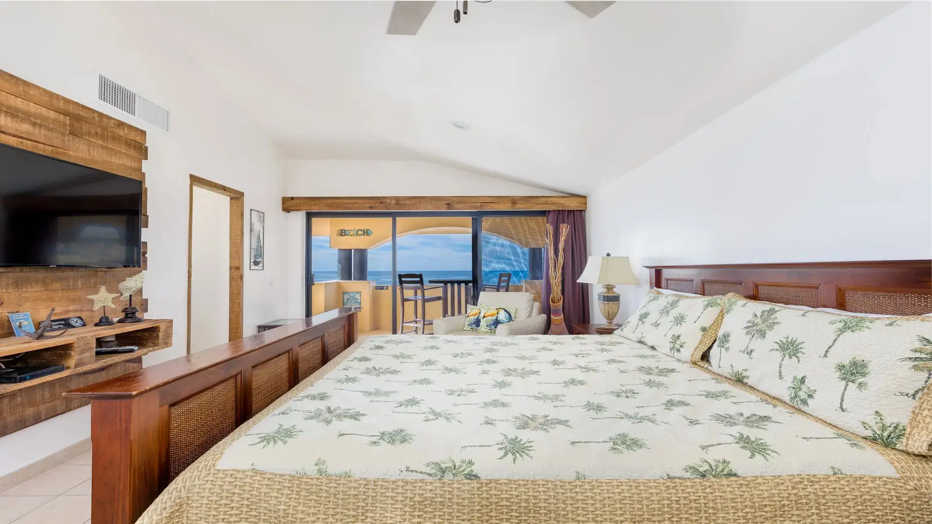 Note: This video showcases the full 3-bedroom layout of E501. This listing features the second-floor master bedroom and the main-level Pineapple Room overlooking the beach and ocean. Need additional sleeping space? View the 3-Bedroom Layout .